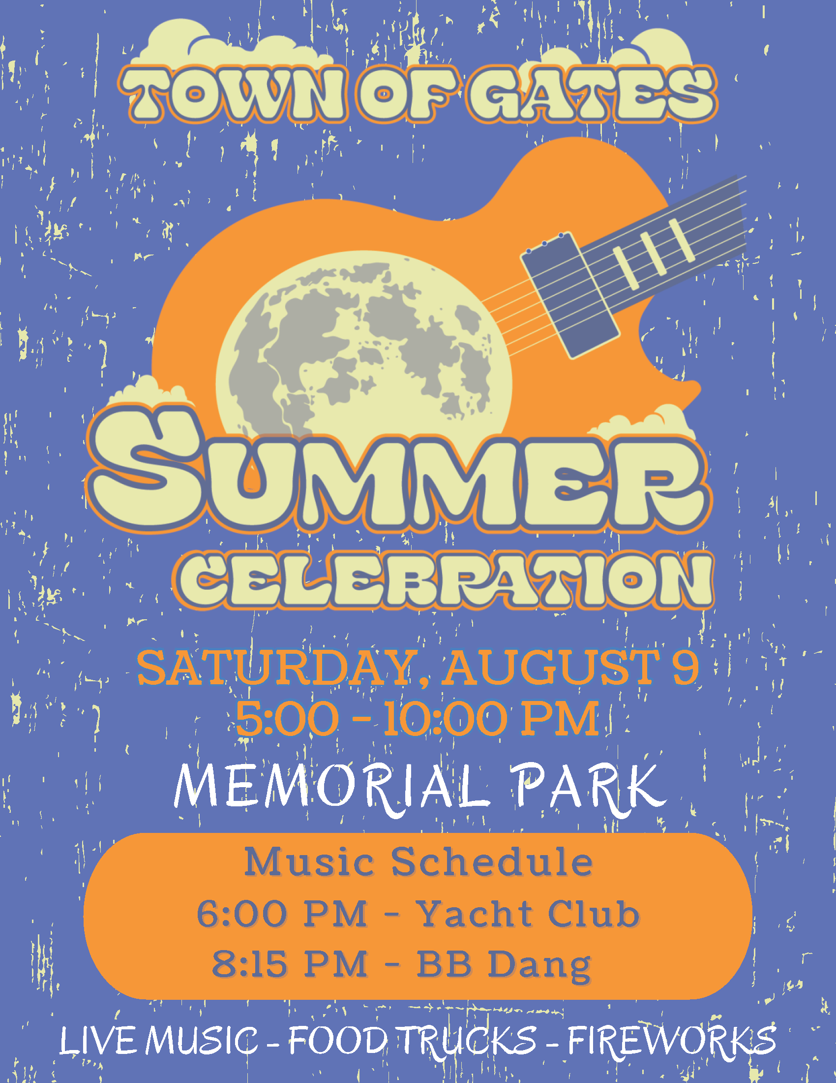 Gates Summer Celebration+ Add to Google Calendar+ iCal / Outlook export DateAug 09 2025Expired! Time 5:00 pm - 10:00 pm LocationMemorial Park160 Spencerport Rd Category CommunityShare this event